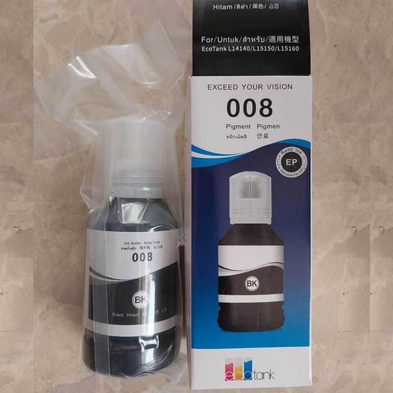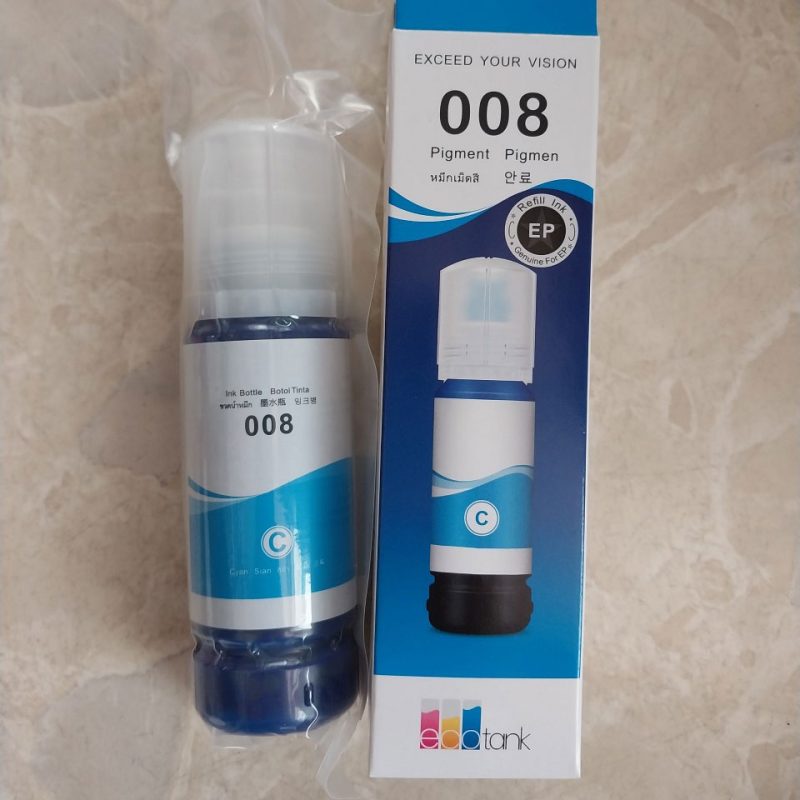 Mực in dầu 008 sử dụng cho máy in phun Epson L6570, L6580, L15150, L15160… gồm 4 màu cơ bản Đen (BK), Xanh (Cyan), Vàng (Yellow), Đỏ (Magenta) thay thế cho mực 008 chính hãng. Năng xuất trang in tối đa 7.500 trang (với độ phủ mực 5% trang in, theo tiêu chuẩn ISO/IEC 19752). Xuất xứ Trung Quốc