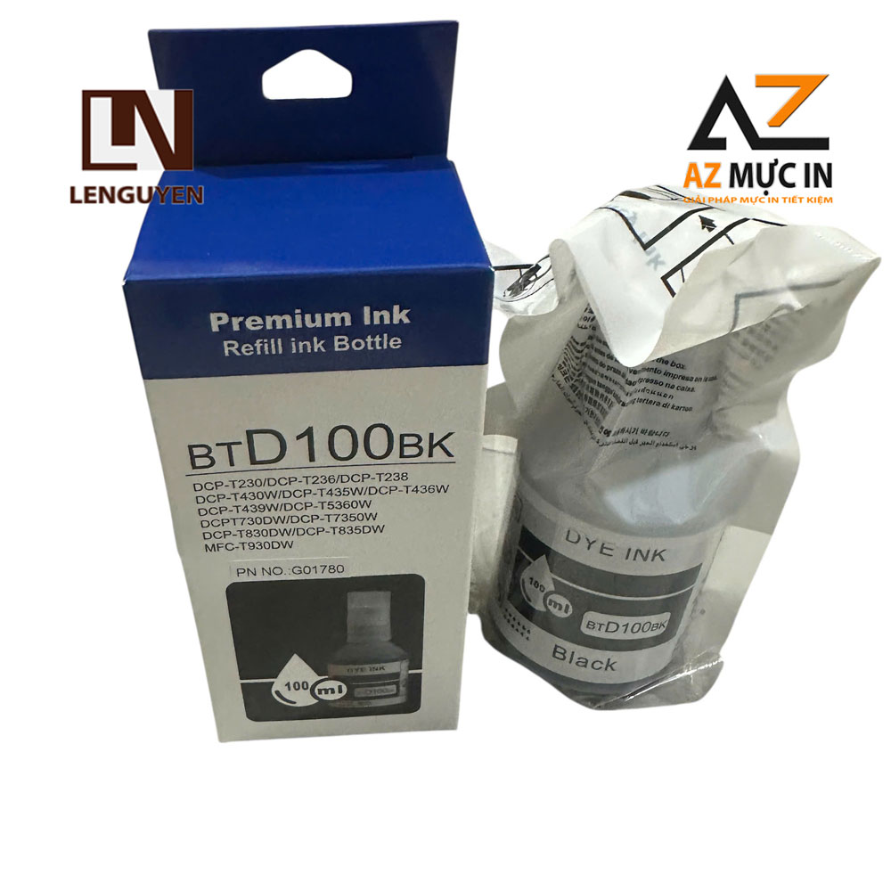 Mực in BTD100BK C Y M là hộp mực dùng cho các dòng máy in MFC-T930DW, DCP-T830DW, T730DW, T530DW, T430W, DCP-T230, Là hộp mực thay thế, chất lượng bản in đẹp. Số lượng trang in nhiều, lên đến 7500 trang. Giúp tiết kiệm chi phí trên mỗi trang in.