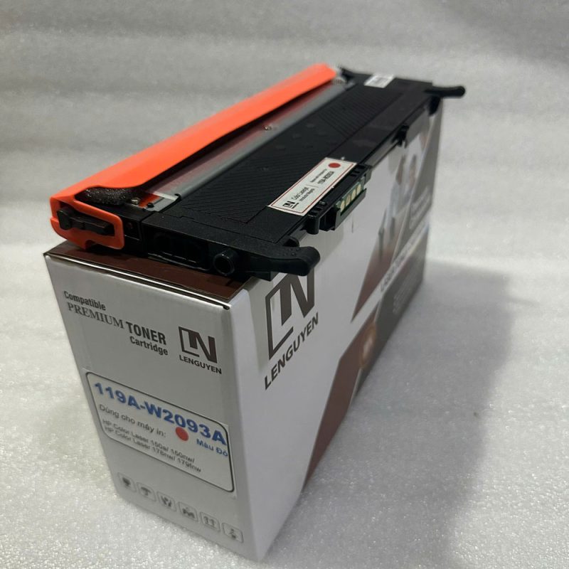 Mực in HP 119A W2093A với dung lượng trang in 1,000 bản trên độ phủ mực 5%. Sản phẩm là một trong bốn hộp mực laser màu sử dụng cho máy in HP Color Laser MFP 178nw, 179fnw, hp Color LaserJet 150a, 150nw. Sản phẩm tương thích giúp người dùng tiết kiệm đáng kể khoảng chi phí sử dụng mực in trong quá trình in ấn. Thiết kế tương tự hàng chính hãng, dễ dàng lắp đặt hay nạp mực lại sau khi dùng hết. Người dùng có thể an tâm khi sử dụng sản phẩm do Lê Nguyễn cung cấp, tất cả các sản phẩm tương thích Lê Nguyễn đều bảo hành 12 tháng hoặc đến hết mực.